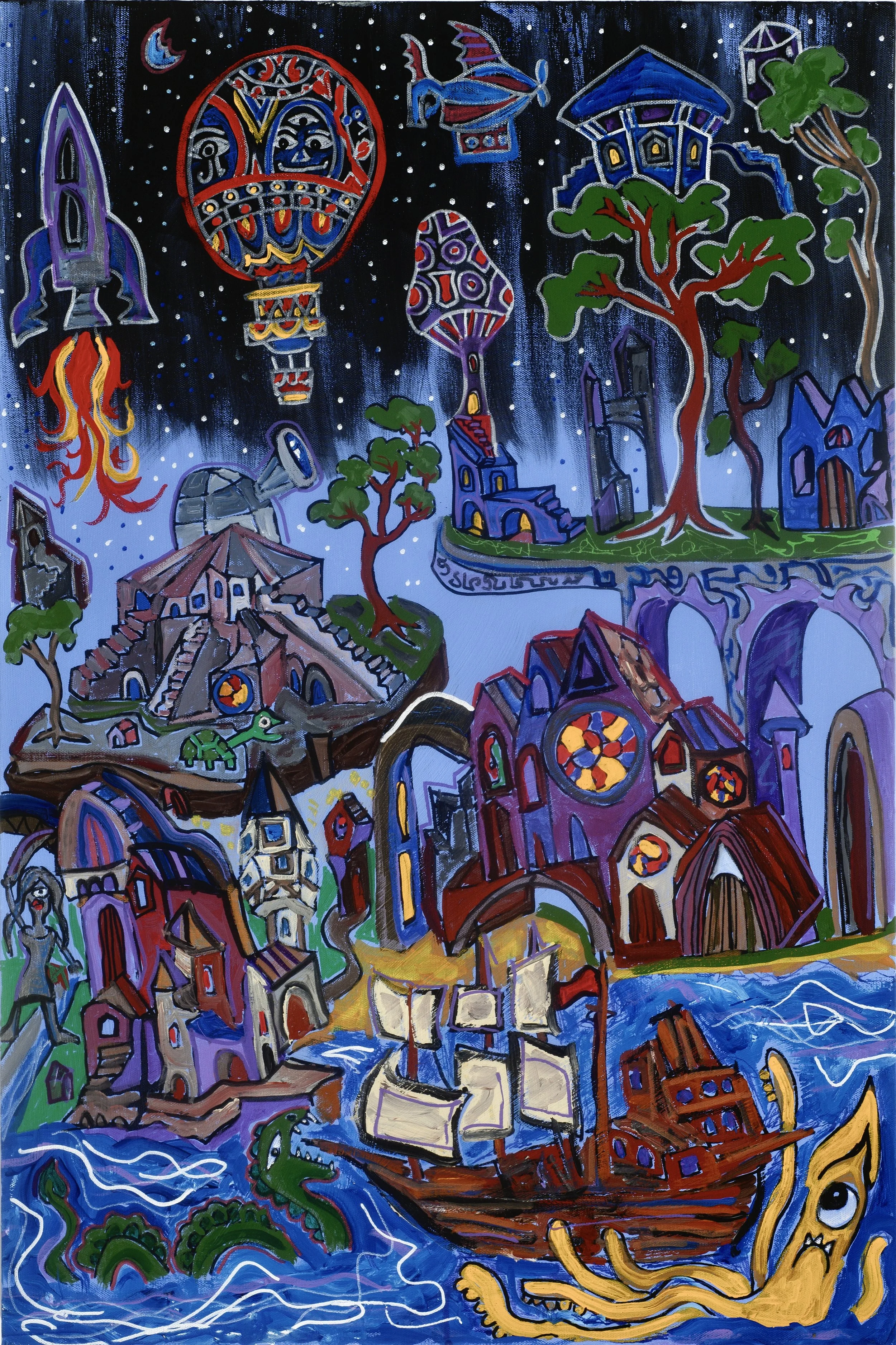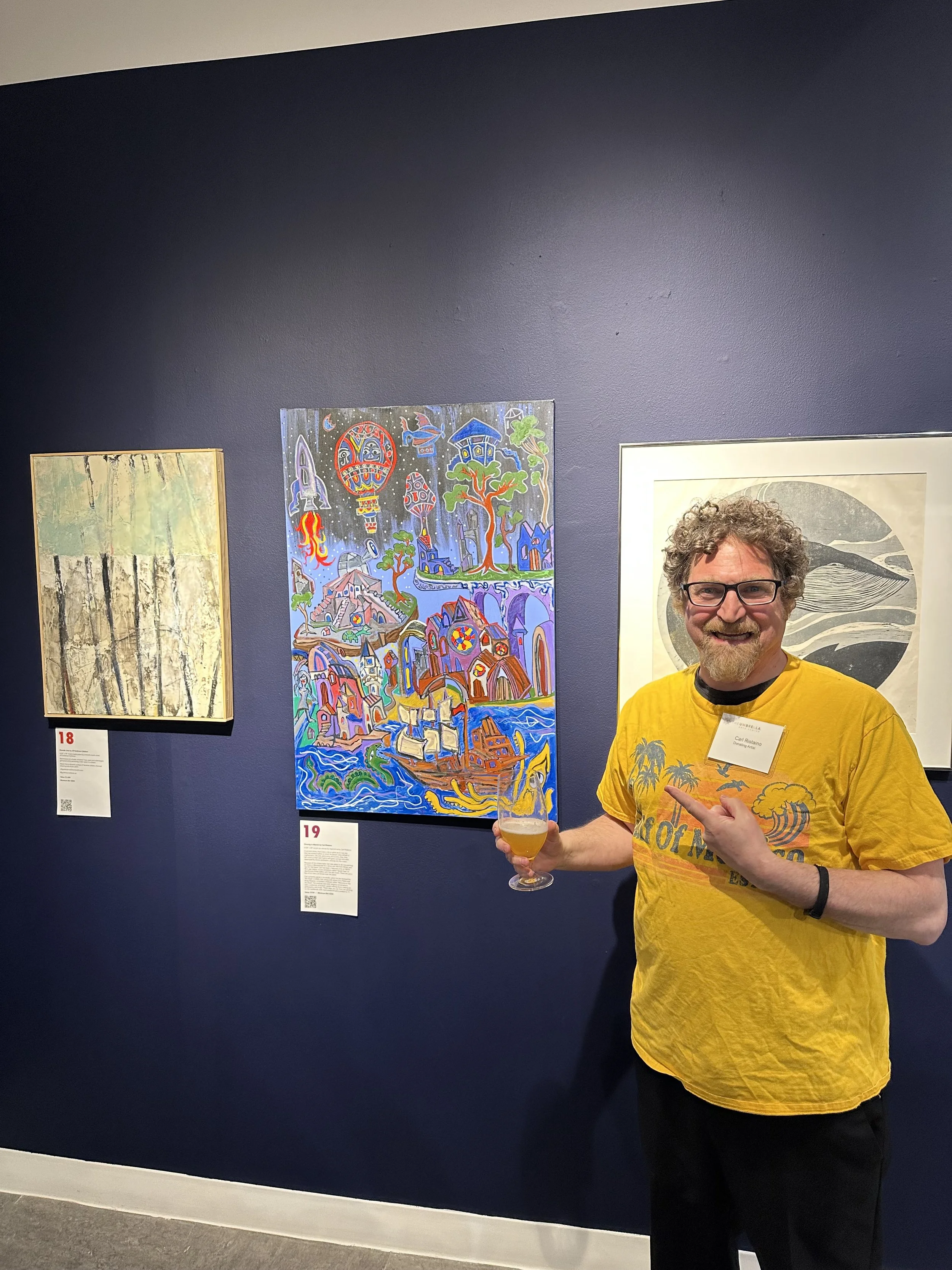 This painting is currently in a show is currently in the show Kaleidoscope at the Umbrella in Concord .